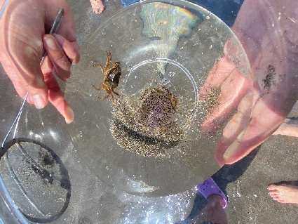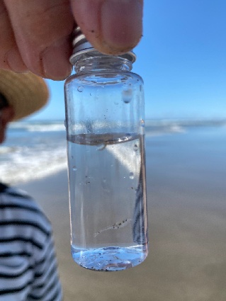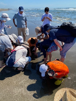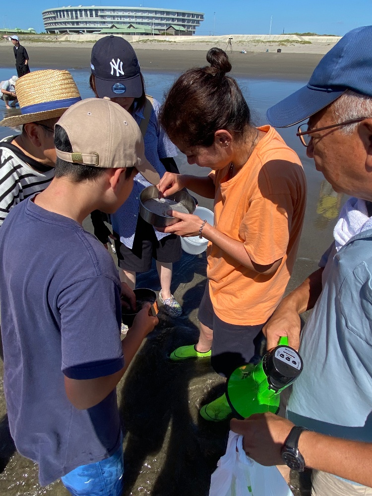 みんな、持参のザルを手に波打ち際で海水をすくってみると…何やら動くものが!