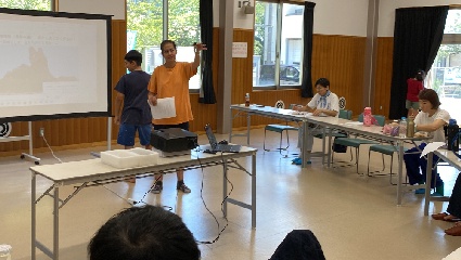 さて、暑さも厳しくなるので会場となる福岡コミュニティーセンターへ移動し、お話の時間。