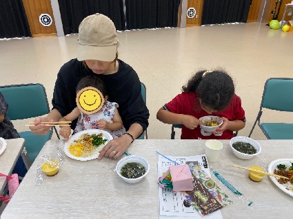 食材から作る時間は取れず、今回は盛り付けのみでしたが、一人一人はかりを使ってご飯の量を測ったり、様々なお野菜を彩り豊かに盛り付け、「いただきます!」
