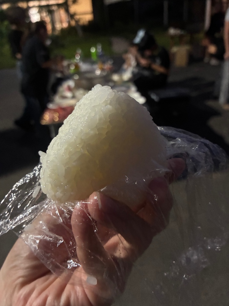 皆様からの寄付もあり、お肉やフランクフルト、軟骨唐揚げ、焼き野菜、焼きそば、そして新米の塩にぎりと、子どもたちの「食べるー!✨」といった声が響いていました!