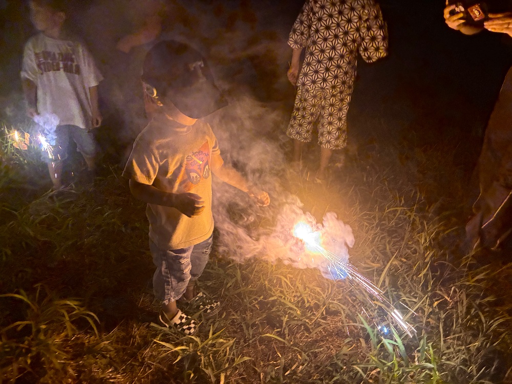 みんなで手持ち花火をしたり、最後は打ち上げ花火も上がり、大人はハラハラ、子どもたちは大はしゃぎでした🎆