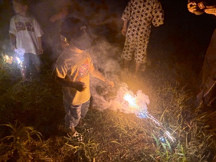 麦畑に戻ったらちいさな花火大会!