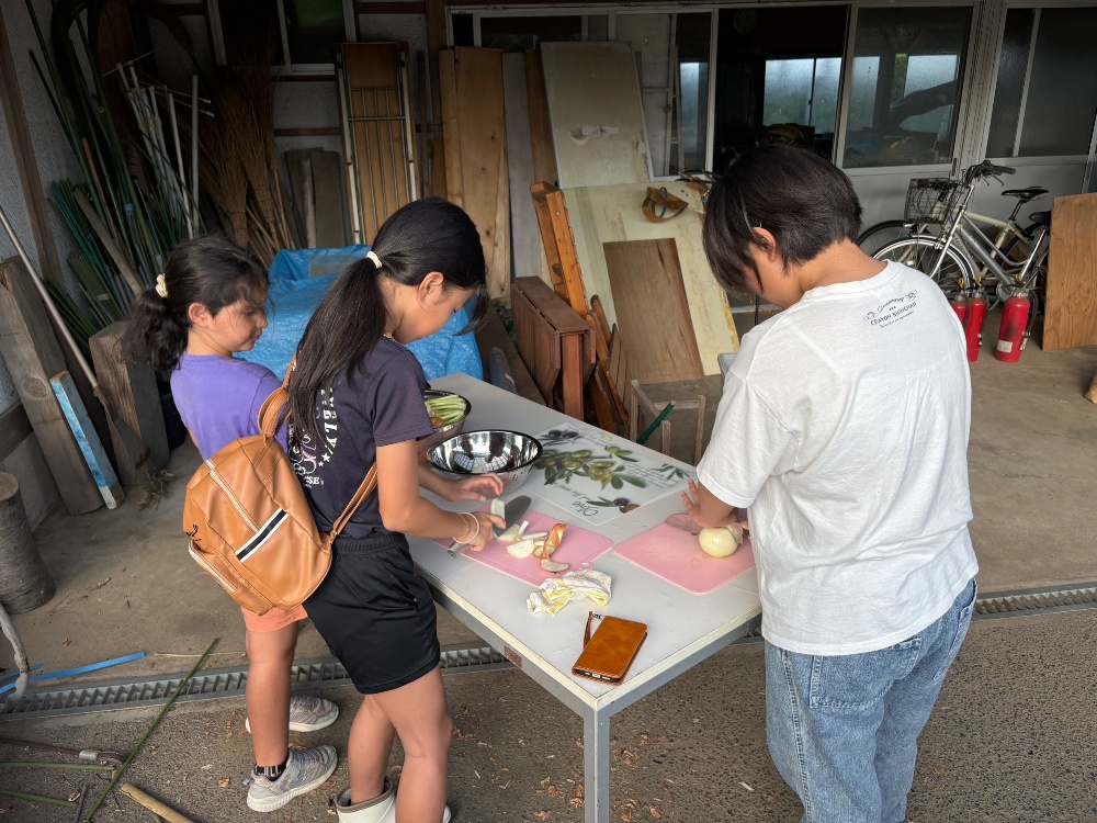 じゃがいもの皮剥きを包丁でしたり、どう切るか考えたりとみんなで交代しながら下ごしらえをし、焚き火でグツグツ🔥🍲
